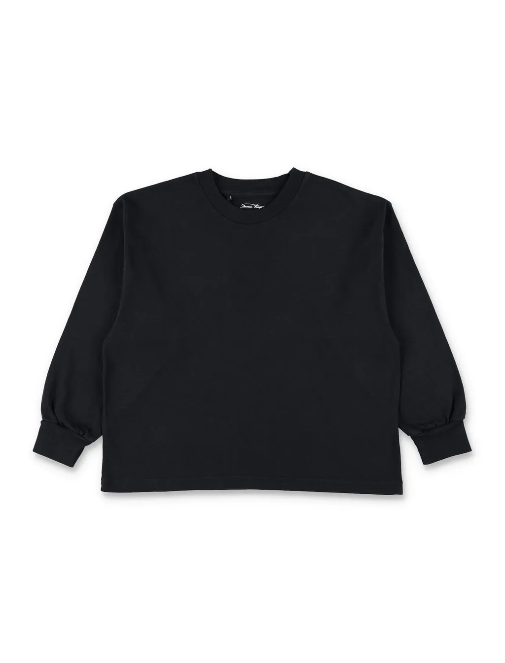 A classic long-sleeved t-shirt with a crew neckline and ribbed cuffs. The silhouette is relaxed and comfortable.