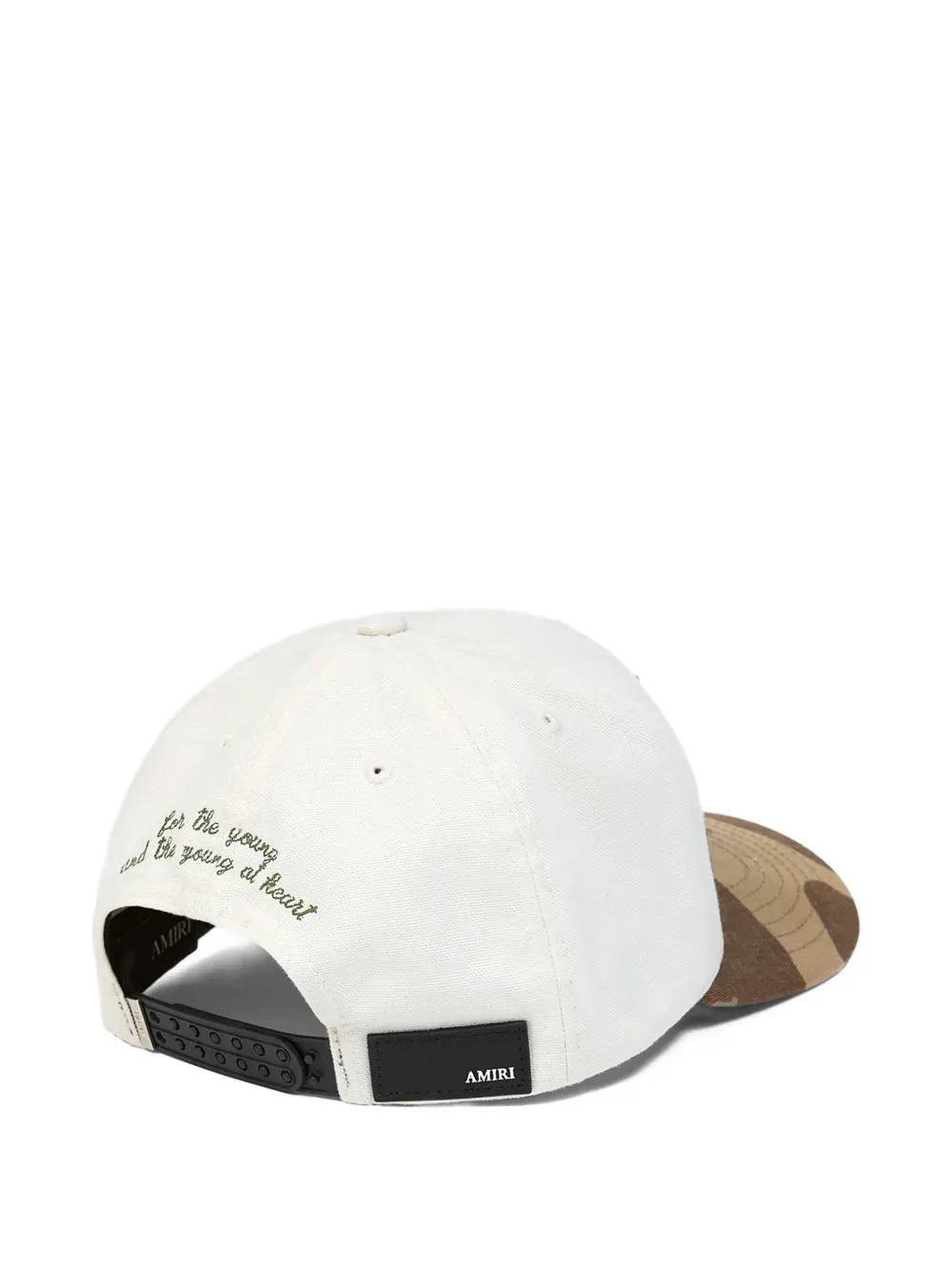 DescriptionCotton and viscose blend baseball cap with a curved brim and double snap back closure. Features an embroidered ma outline logo on the front and camouflage print on the brim.