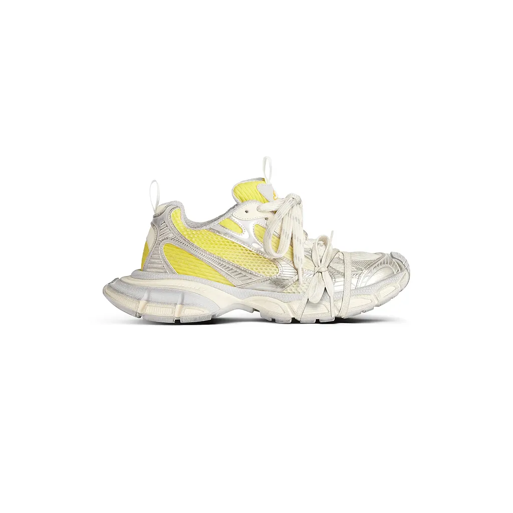 Leather-free sneaker with a worn-out effect. Features balenciaga logo at the edge of the toe and at the back, embossed size on the upper and heel, and 3xl rubber branding on the tongue with reflective detail. Includes back and tongue pull-on tabs with reflective detail. Made in china.