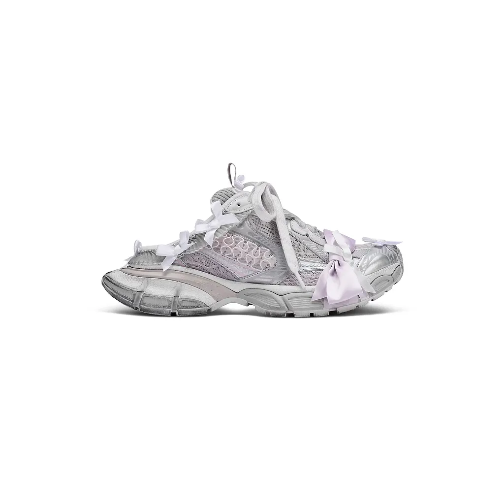 3xl lace mule in white and light pink polyester and polyurethane<br><br>• leather free<br>• mule<br>• polyurethane and polyester<br>• worn-out effect<br>• bows and lace on the upper <br>• 3xl front and sole with open back<br>• balenciaga logo at the edge of the toe and at back<br>• embossed size on the upper <br>• 3xl rubber branding on the tongue with reflective detail<br>• tongue pull-on tab with reflective detail<br>• made in china