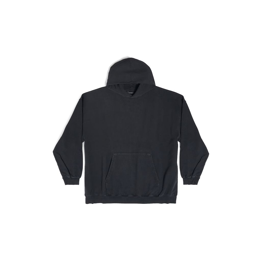DescriptionBalenciaga back hoodie large fit in black and silver medium curly fleece<br><br>• medium curly fleece<br>• hood without drawstring<br>• 1 kangaroo pocket on front<br>• gathered at cuffs and waistline<br>• balenciaga back logo in rhinestones at back<br>• washed-out effect<br>• made in portugal<br>• dry cleaning