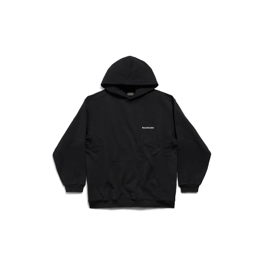 DescriptionThis balenciaga back hoodie is made of curly fleece and features a hood without a drawstring, dropped shoulders, and a kangaroo pocket on the front. It is gathered at the cuffs and waistline, with the balenciaga back logo embroidered at the chest and back. This garment is made in portugal.