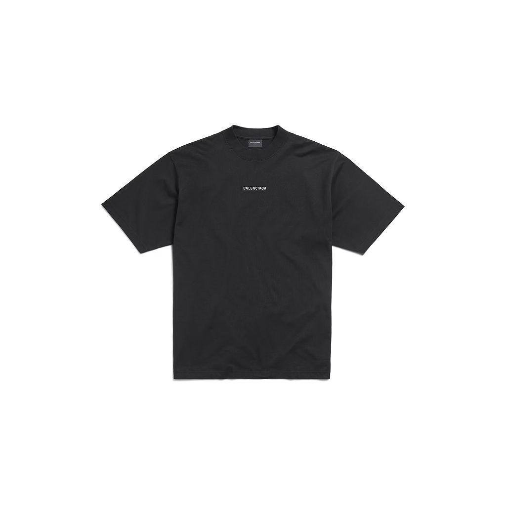DescriptionBalenciaga back t-shirt medium fit in black vintage jersey<br><br>• vintage jersey<br>• this item is unisex<br>• crewneck<br>• short sleeves<br>• balenciaga back logo printed at front and back<br>• reflective effect artwork<br>• made in portugal