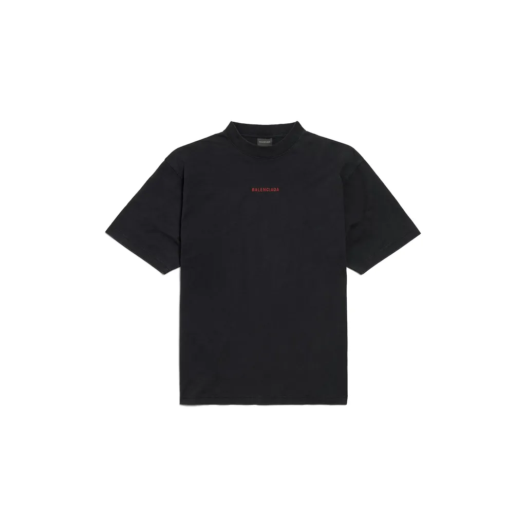 DescriptionThis medium fit t-shirt is crafted from dry jersey in a faded black and red colorway. It features a crewneck, short sleeves, and the balenciaga back artwork embroidered at the front and back. Made in portugal.