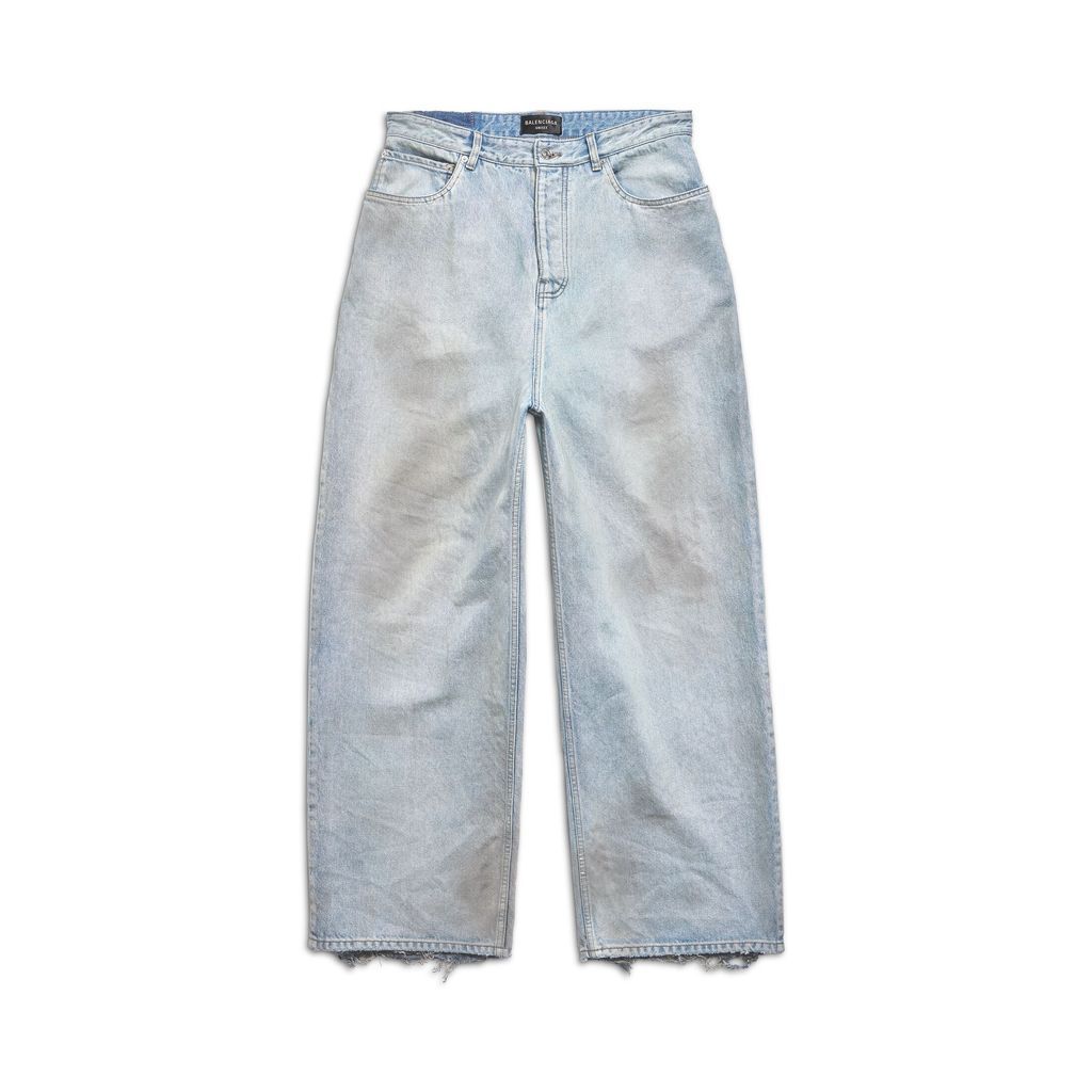 DescriptionBaggy pants in blue japanese twill with a mid-waist, covered button fly, five belt loops, and five pockets. Features balenciaga engraved flex buttons, an inlaid patch at the back, and worn-out detailing at the hem. Made in japan. Dry cleaning recommended.
