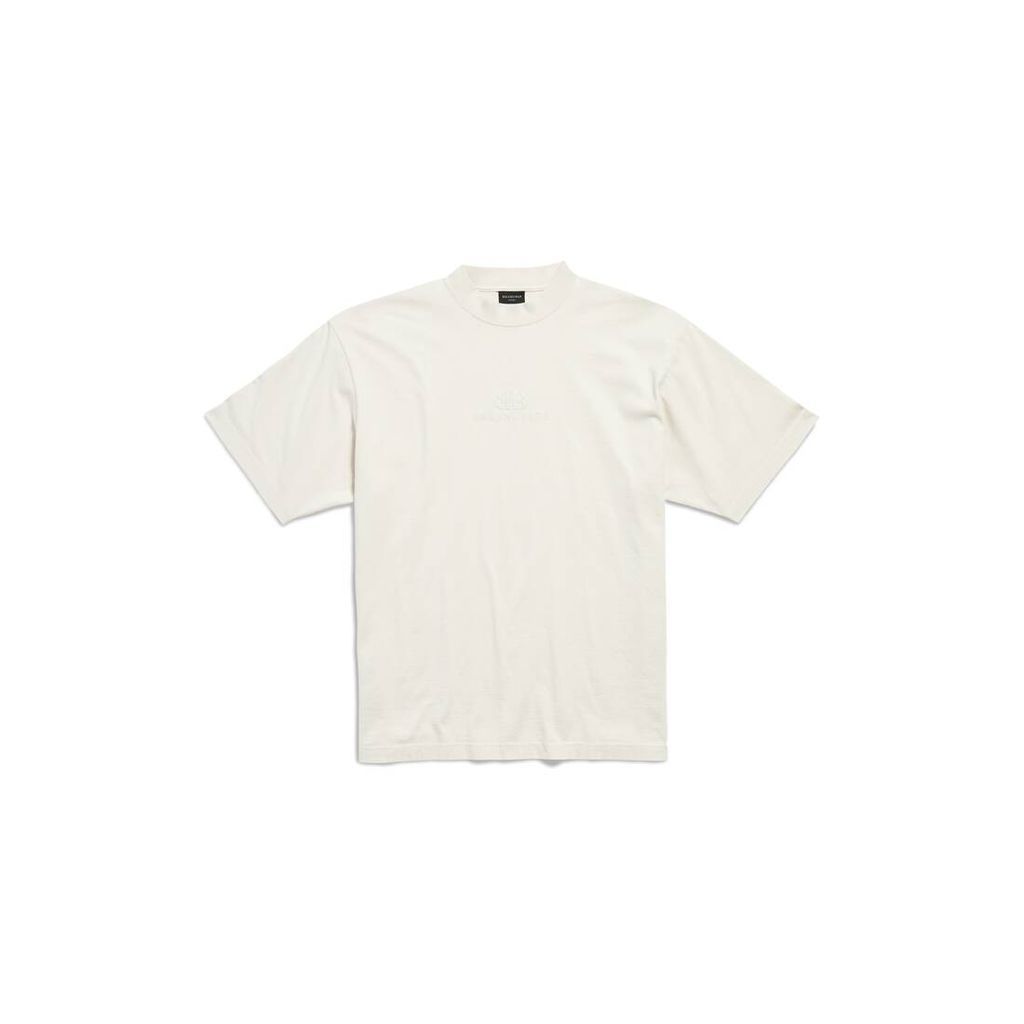 DescriptionMedium fit t-shirt in off-white vintage jersey. Features a crewneck, short sleeves, and a tone-on-tone embroidered bb classic balenciaga logo at the front. Designed with a worn-out effect.