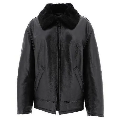 Black leather jacket with fake fur lining and collar