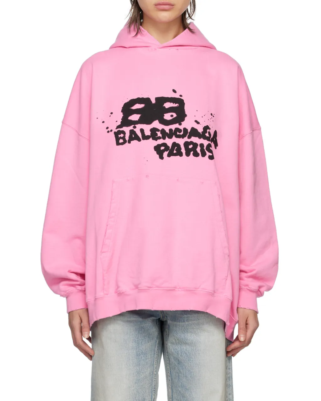 DescriptionHooded sweatshirt with a drawstring, a front kangaroo pocket, and folded cuffs and waist. Features a hand-drawn bb icon art graphic on the front and back with a worn and washed effect. Pullover style with a regular fit.