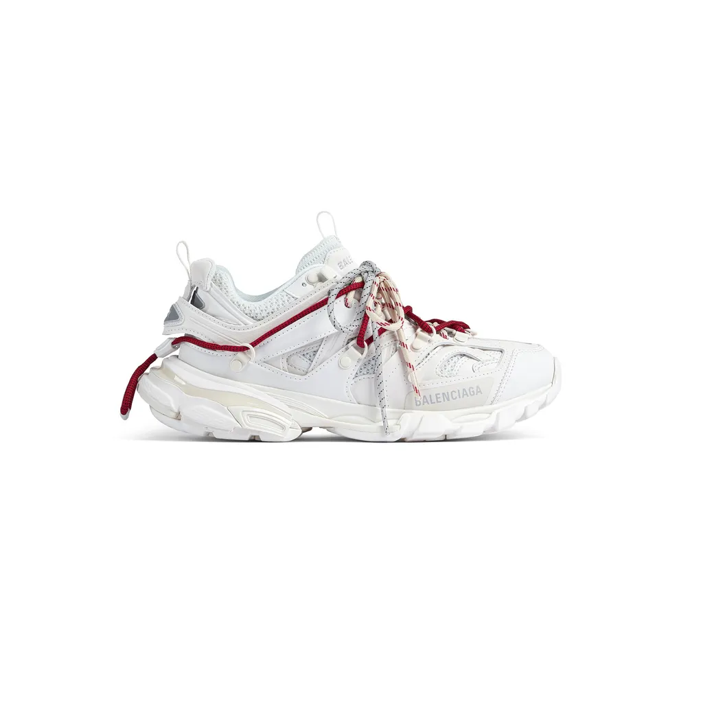 Leather-free sneaker with a written size at the edge of the toe, track debossed at the back of the heel, bb logo debossed on the front of the outsole, and printed balenciaga logo on the exterior. Features a debossed logo on the tongue, laces with a cord lock at the back, double laces knotted in a usual equipment way, and a back and tongue pull-on tab. The dynamic sole design has an augmented back for more comfort.