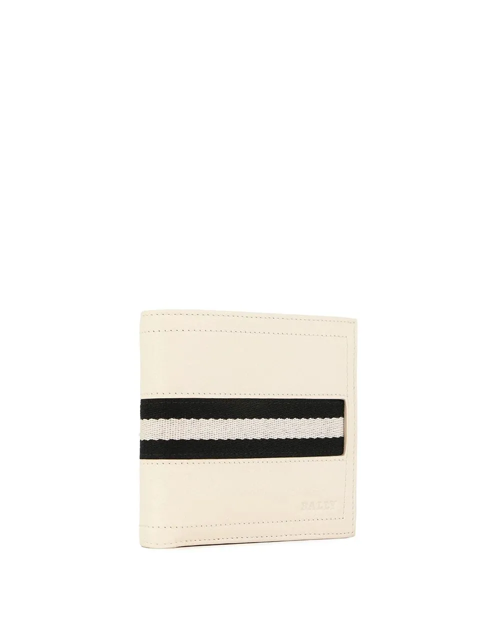 White folding wallet with a built-in multi-card slot and banknote compartment. Features a black and white stripe detail.