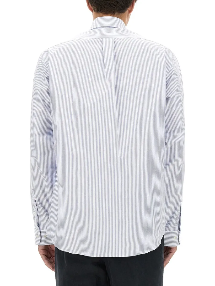 A classic button-down shirt with a vertical stripe pattern. Features a pointed collar, a single chest pocket, and long sleeves with buttoned cuffs. The shirt is designed with a relaxed fit.