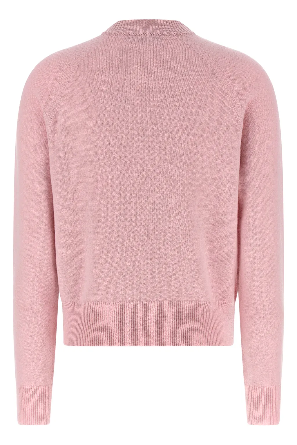 Wool and cashmere blend jumper in pink. Features a round neck, long sleeves, and decorative gold-tone lion head buttons on the left shoulder.