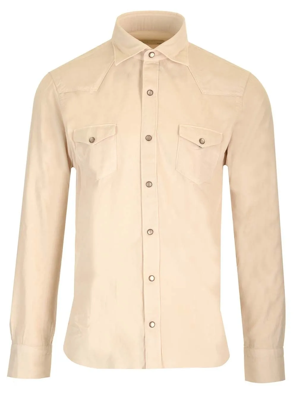 A classic western-style shirt with a pointed collar, button-down front, and two chest pockets with button closures. Features western-style yoke detailing on the shoulders and back. Long sleeves with button cuffs.