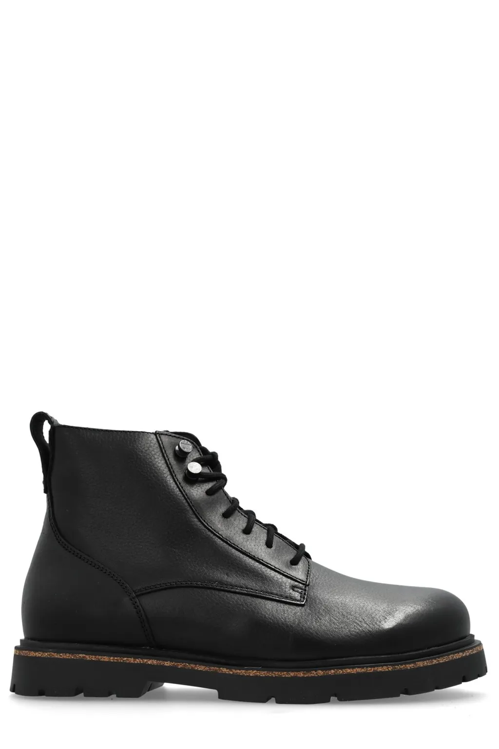 Classic lace-up boots with a round toe, a pull tab at the heel, and a thick lug sole.