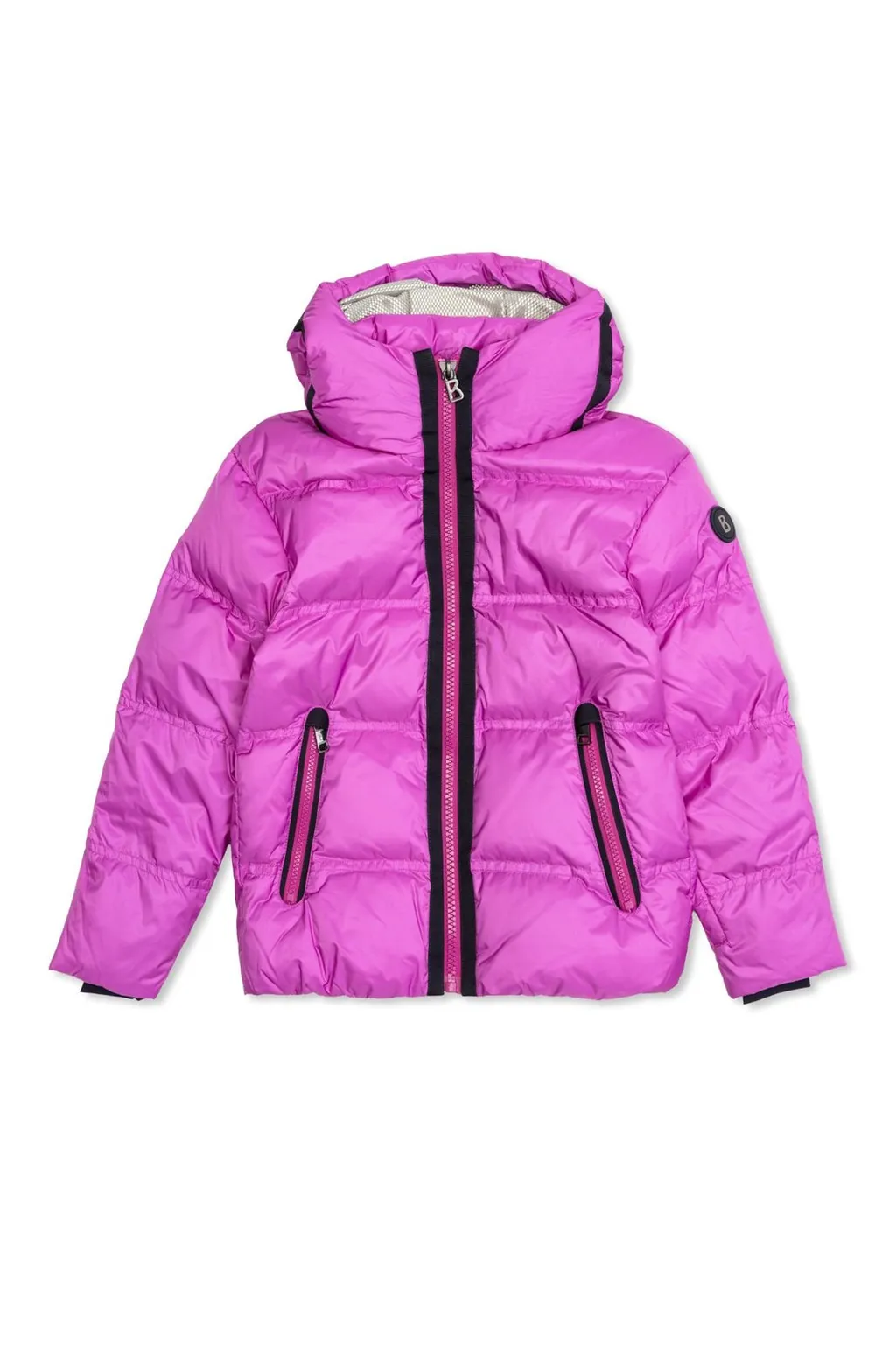 DescriptionA vibrant pink puffer jacket for kids, featuring a high collar that can be zipped up to form a hood. It has a full-zip front closure with contrasting black and pink zipper teeth. Two zippered pockets are located on the front. The jacket has a quilted, padded design for warmth.