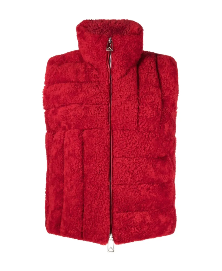 Lambskin sleeveless jacket with a regular fit. Features a high neck, zip-up closure, and quilted detailing.