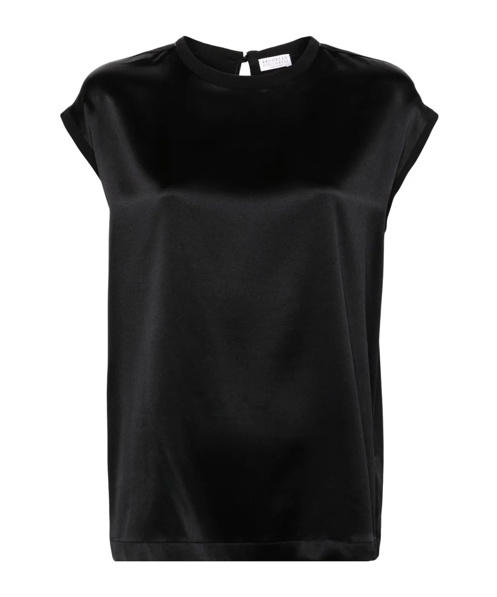 Brunello Cucinelli Beaded-Trim Satin Blouse | Wardatrobe