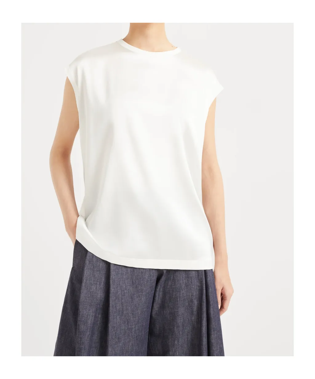 Brunello Cucinelli Cap-Sleeved Crewneck Satin Blouse | Wardatrobe