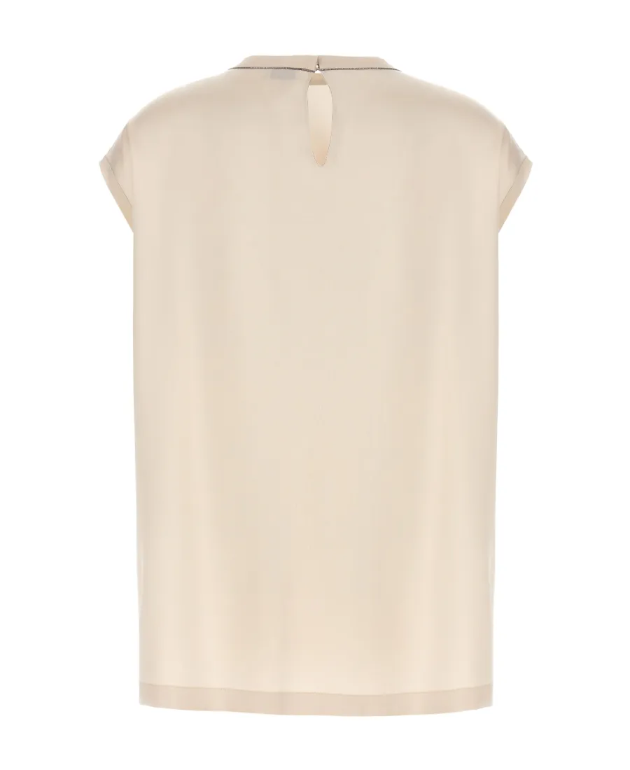 Brunello Cucinelli Cap-Sleeved Crewneck Satin Blouse | Wardatrobe