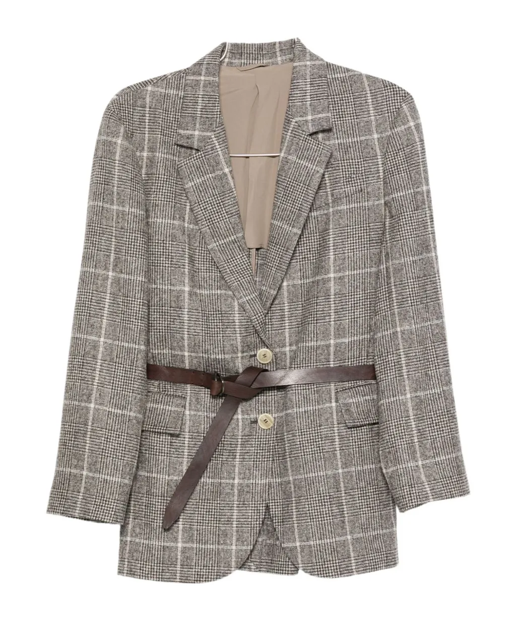 Brunello Cucinelli Checked Belted Blazer | Wardatrobe