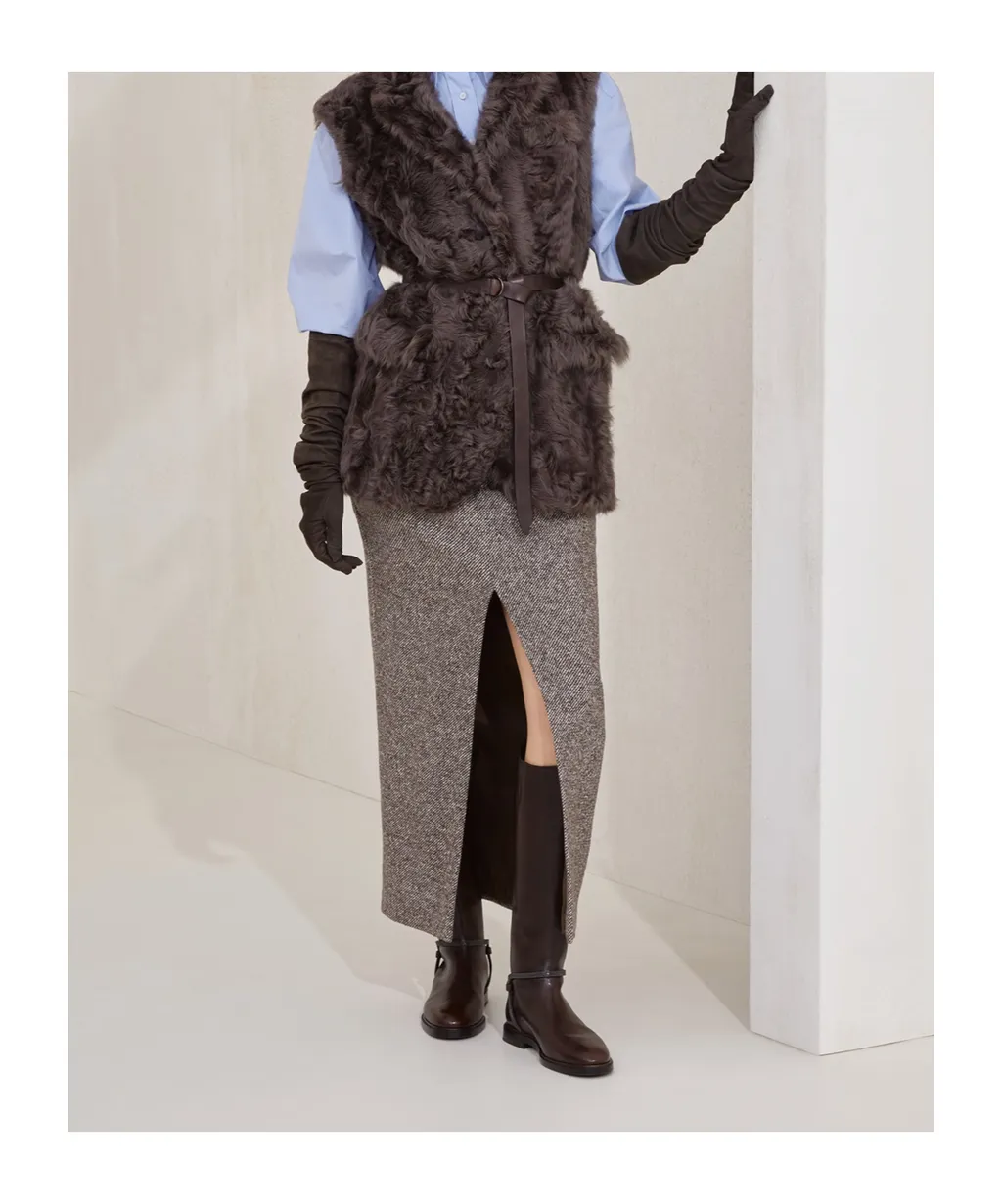 Brunello Cucinelli Diagonal Sartorial Pencil Skirt | Wardatrobe