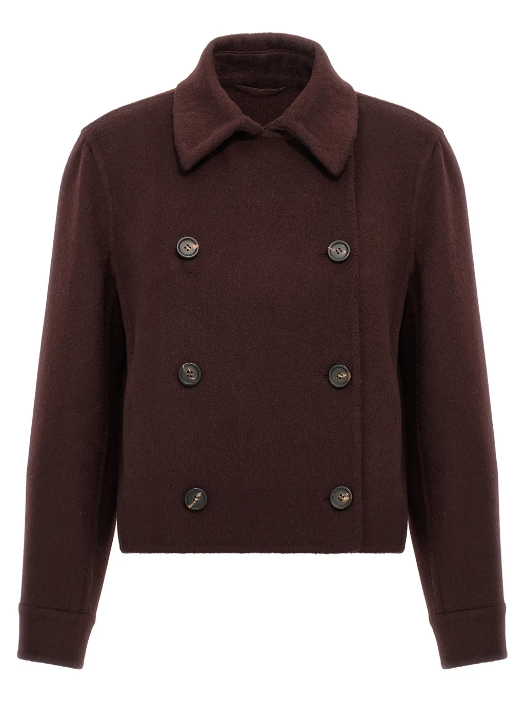 Long sleeves, double-breasted design with a double row of buttons. Regular fit.