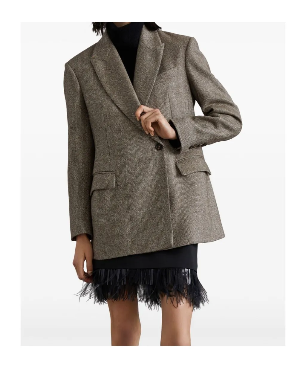 Double-breasted Herringbone Tailored Blazer