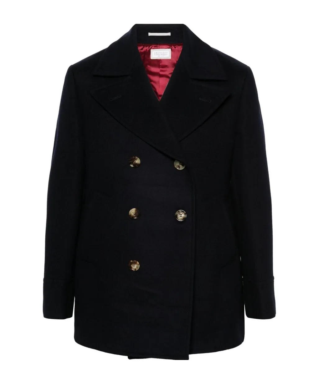 DescriptionA double-breasted coat with long sleeves, pockets on both sides, a partially lined interior, built-in pockets, and a british rear split. Features a double row of buttons. Designed for a loose, regular fit.