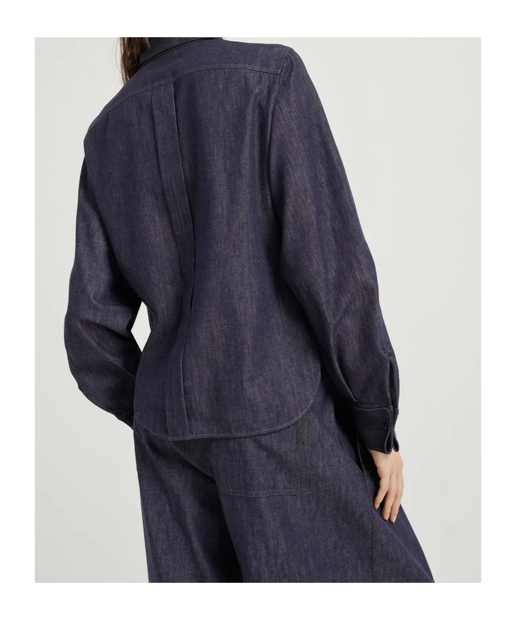 Brunello Cucinelli Embellished Long Sleeved Denim Shirt | Wardatrobe