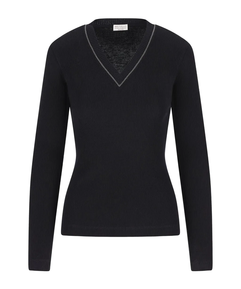 Brunello Cucinelli Embellished V-Neck Sweater | Wardatrobe