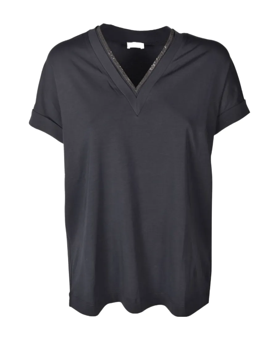 Brunello Cucinelli Embellished V-Neck T-Shirt | Wardatrobe