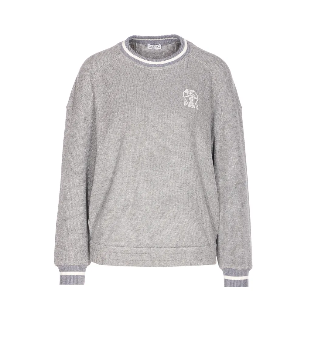 Brunello Cucinelli Embroidered-Detail Ribbed-Cuff Sweater | Wardatrobe