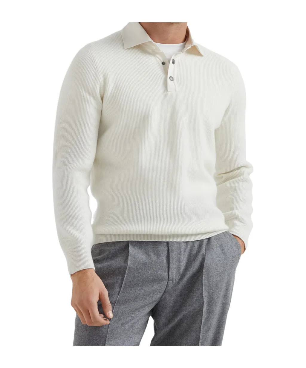 Brunello Cucinelli English Rib Knit Twill Spread Collar Polo Shirt | Wardatrobe
