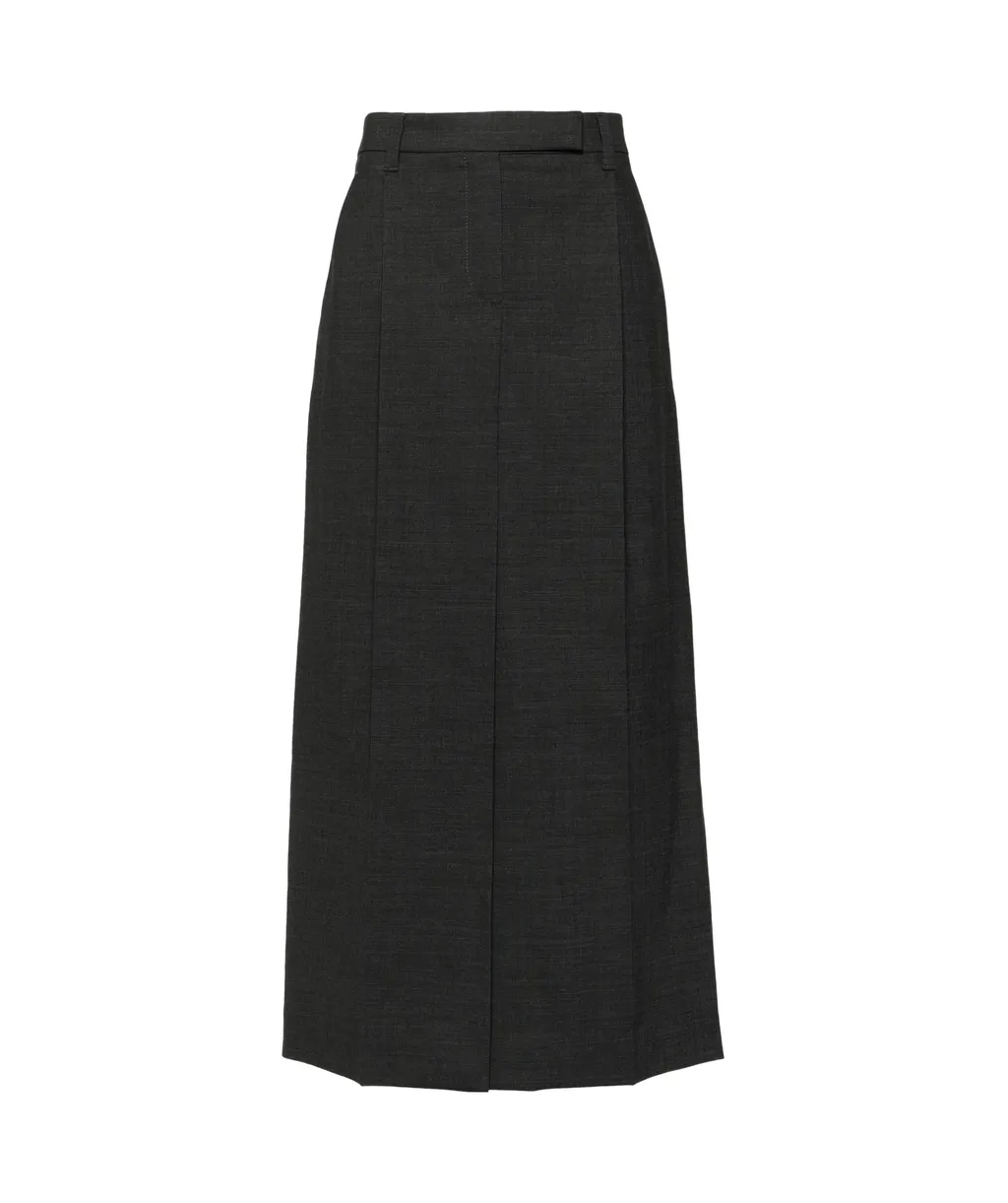 DescriptionSkirt with belt loops, two diagonal pockets on both sides, two rear welt pockets, and a hidden hook and button zipper closure. Features a zipper, pencil silhouette, mid-length, and medium waist.