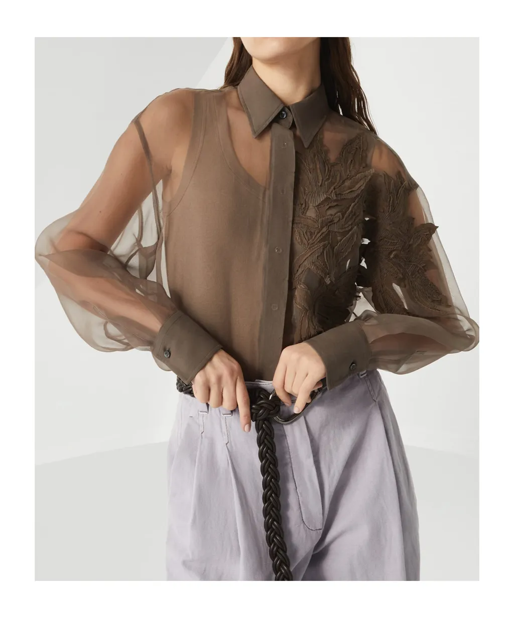 Brunello Cucinelli Herbarium Appliqué Crispy Satin Shirt | Wardatrobe