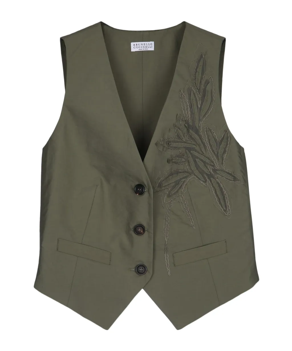 Brunello Cucinelli Herbarium-Appliqué V-Neck Waistcoat | Wardatrobe