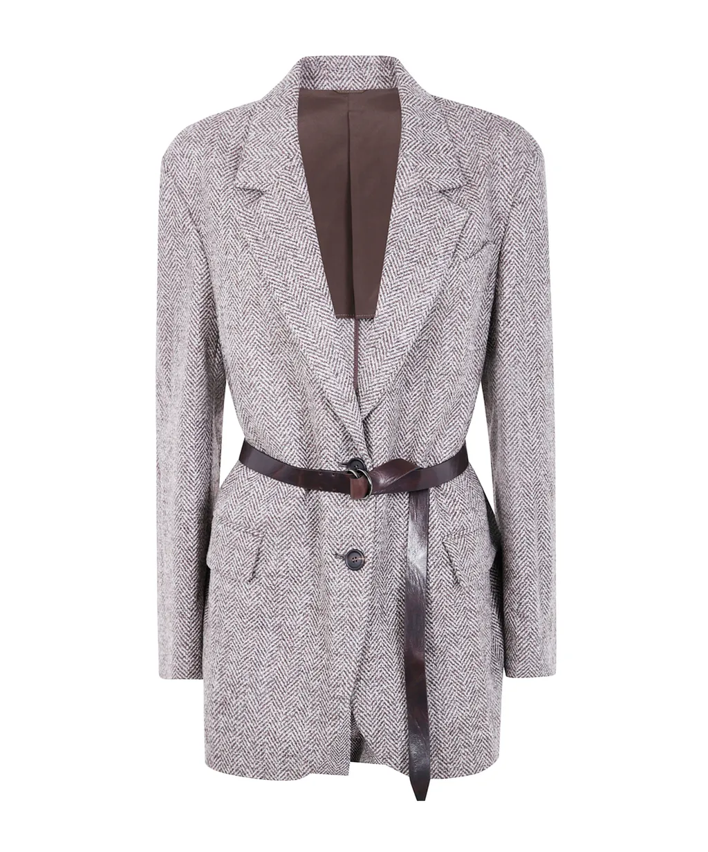 Brunello Cucinelli Herringbone Belted Jacket | Wardatrobe