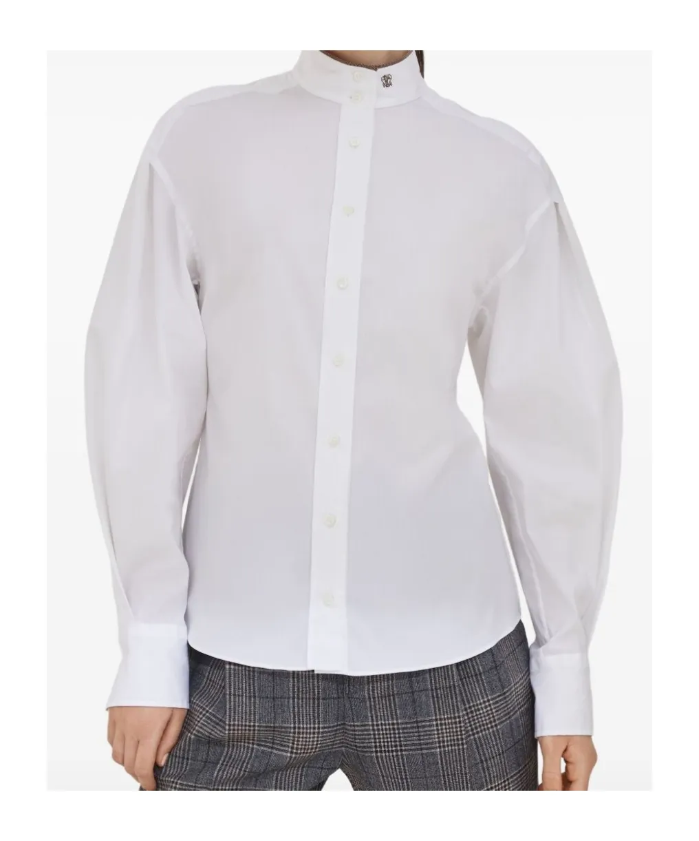 Shirt with a high collar, button opening and closing, long sleeves, and bubble cuffs. Features single row buttons and a regular fit.