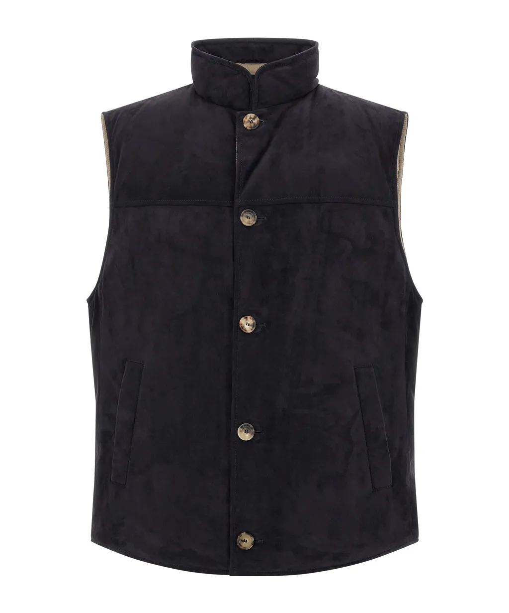 Brunello Cucinelli High-Neck Leather Vest | Wardatrobe