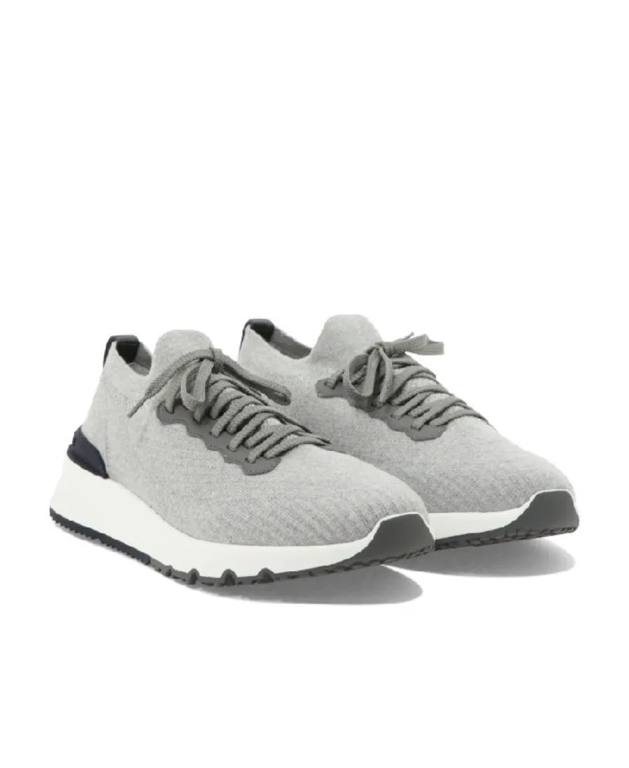 Brunello Cucinelli Knitted Lace-Up Sneakers | Wardatrobe