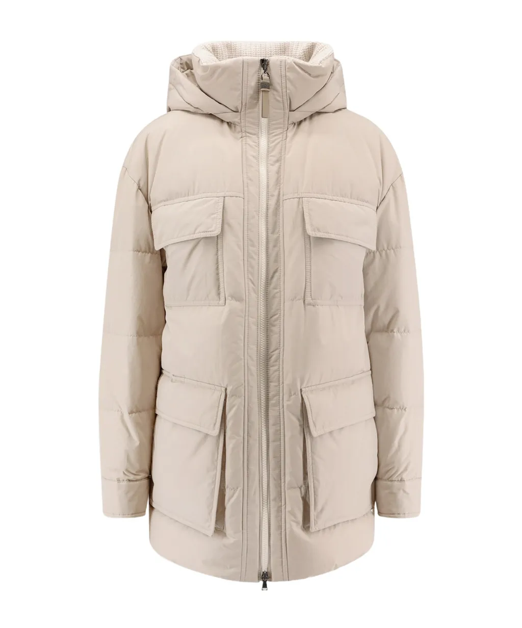 Brunello Cucinelli Knitted Neck Down Jacket | Wardatrobe