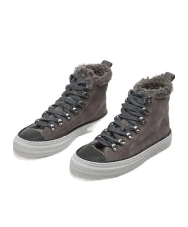 Lace-up sneakers with front lacing and perforated details. Features a round toe and ankle boot silhouette with a pull-on design.