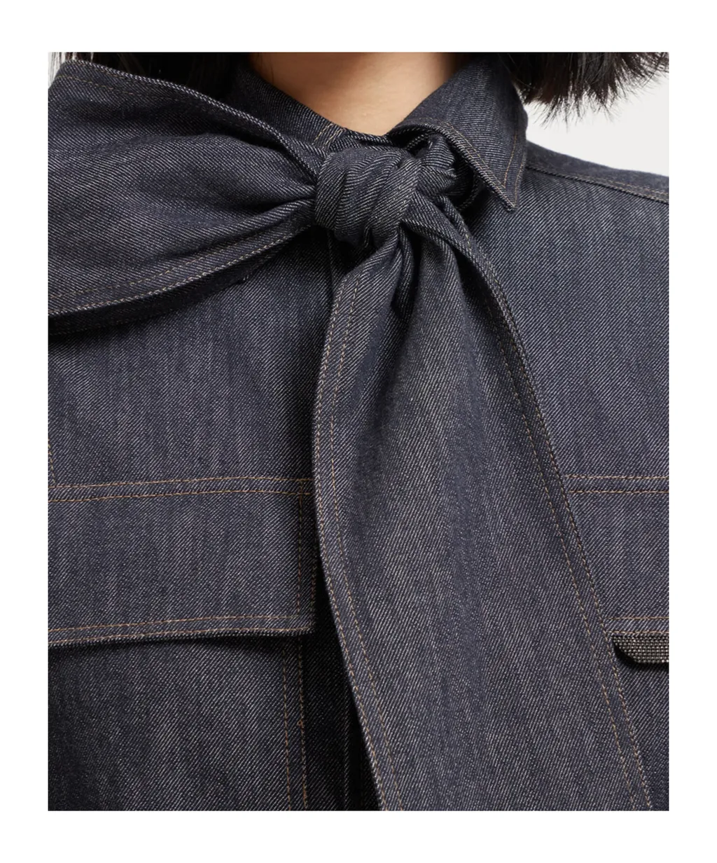 Brunello Cucinelli Lightweight No-Fade Denim Pussybow Shirt | Wardatrobe