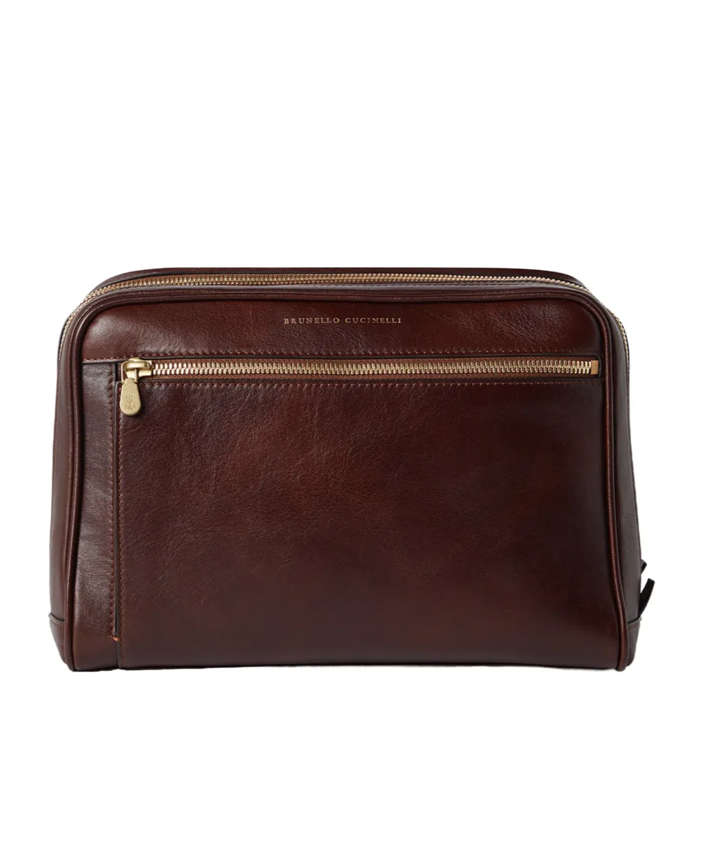 Brunello Cucinelli Logo Detailed Zipped Wash Bag | Wardatrobe