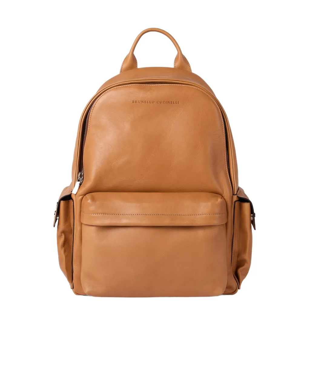 Brunello Cucinelli Logo-Printed Zipped Backpack | Wardatrobe