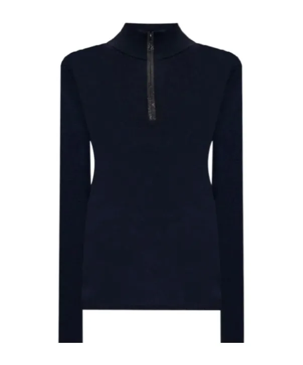 High collar sweater with a regular fit and a zipper opening and closing. Long sleeves.