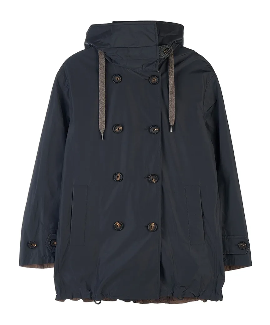 Long sleeves, drawstring design, double-breasted, hat details. Regular fit.