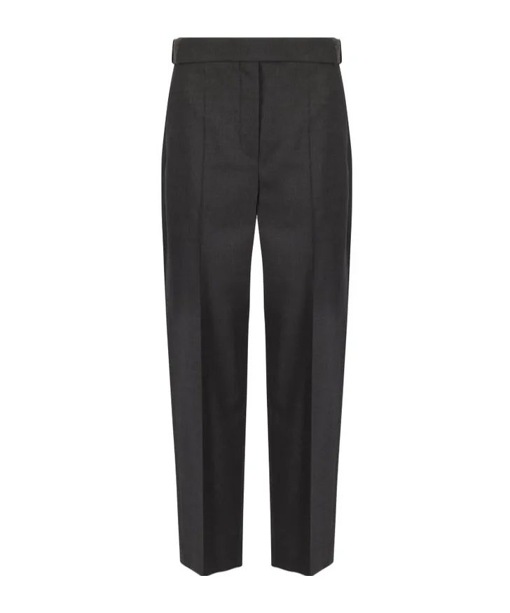DescriptionTailored trousers featuring monili chain details, two oblique side pockets, crimped, two rear welt pockets, hidden hook and loop closure, and front closure. Designed in a regular fit with a medium waist.