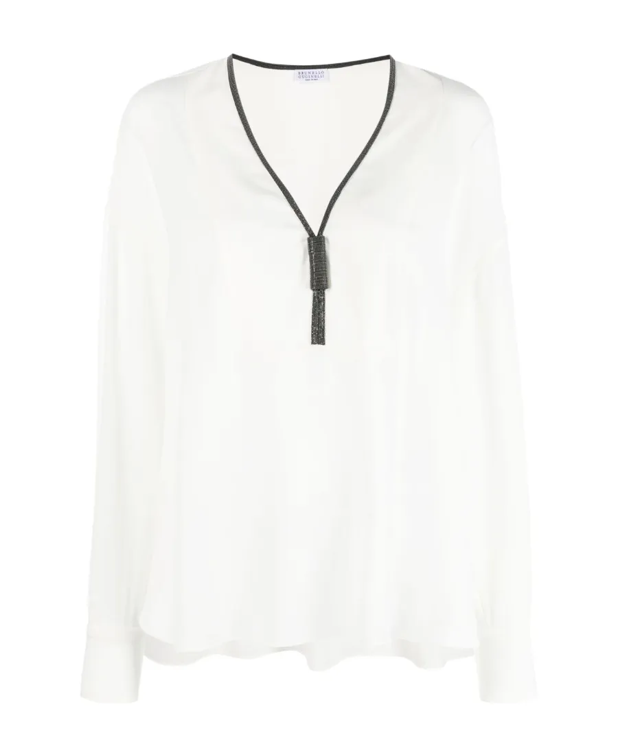Brunello Cucinelli Monili-Trim Long-Sleeve Blouse | Wardatrobe