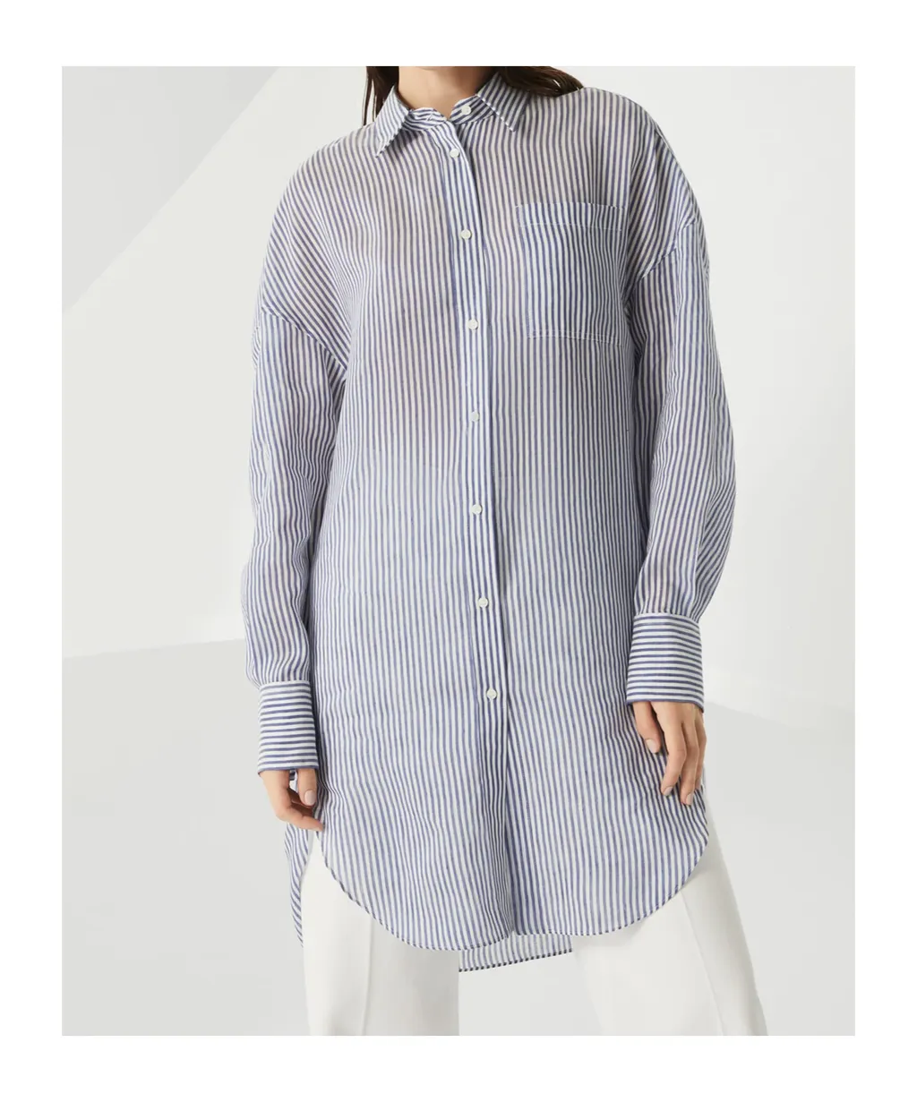 Brunello Cucinelli Monili-Trim Striped Long Shirt | Wardatrobe